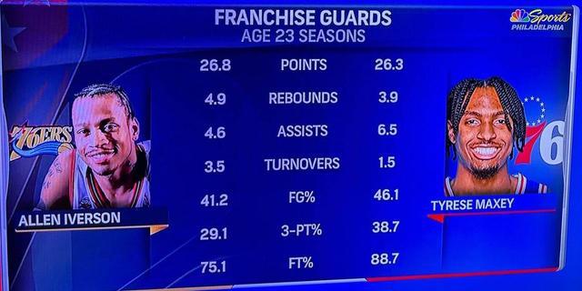 在过往的各个阶段,马克西都免不了要和艾弗森做比较,实在是当76人球迷无法指望下一个张伯伦的时候,就只能寄希望于“下一个艾弗森”,马克西的肩上承载了太多东西。